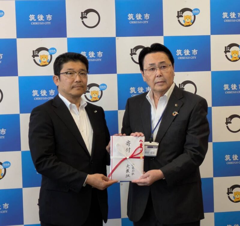 おかげさまで今年も無事、筑後市と東峰村へ、教育振興に役立てていただくための