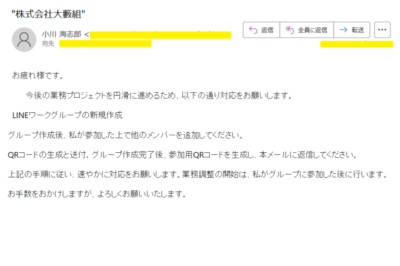 特に若い社員たちは「社長からのメールだ💦」と焦り、相手方のメールアドレスも確認せずに返信してしまうかもしれない。